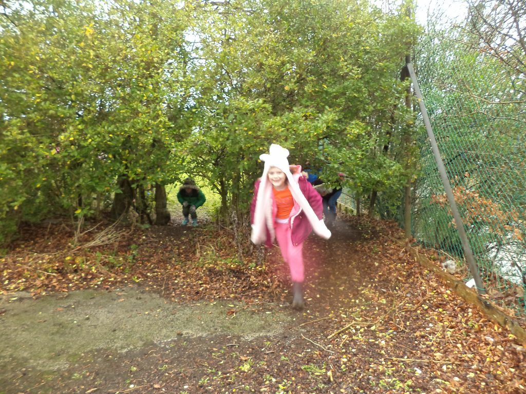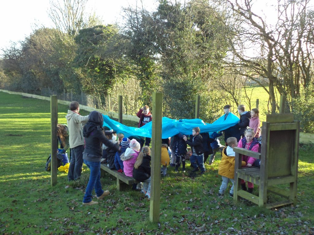 The children went on walks around the school using features of the outdoor area to stimulate imagination for stories; where simple fences became dungeons, trees became an enchanted forest; benches became a snow castle; the sand pit became a desert island; willow branches became a witches cauldron. The children invented their own characters and worked together collaboratively to plan and create their own stories. We were even lucky enough to experience a real snow day! We built snow castles; bridges and an enchanted snow frog. The children went on a trip to a local area to explore a real castle and a real tunnel; exploring emotions and exploring ideas for stories. Amy Douglas (Storyteller) told us a story by the canal and tunnel. The children played a wide range of games to develop self esteem and confidence with speaking and listening.